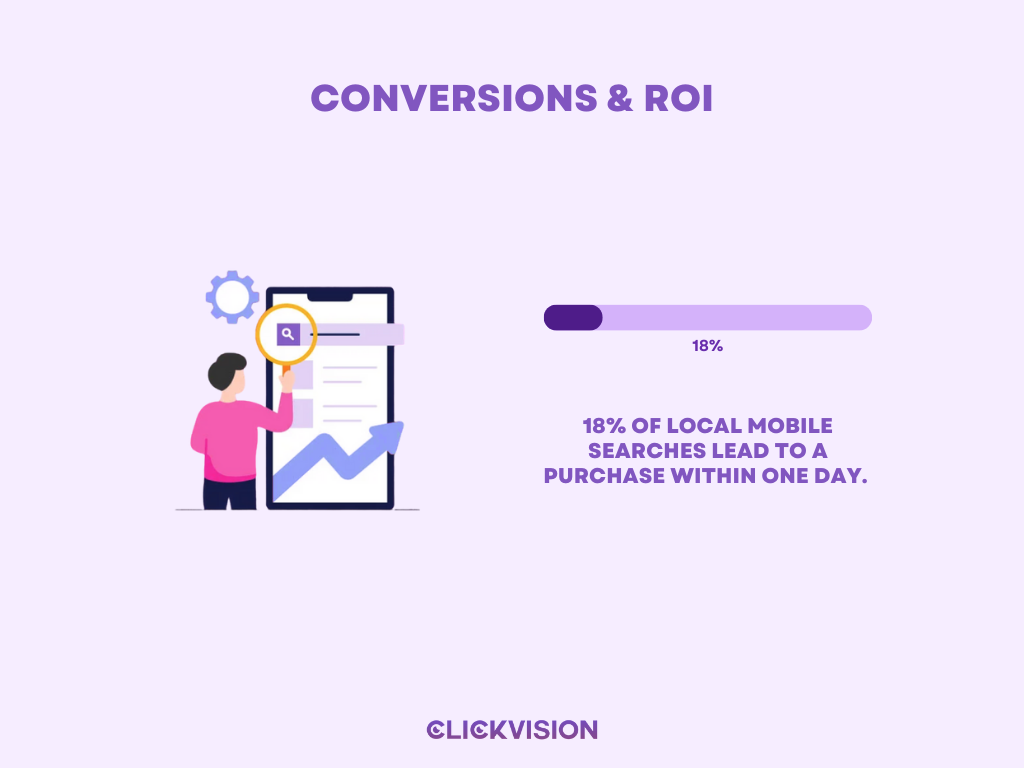 - 18% of local mobile searches lead to a purchase within one day. (Source: AIOSEO)