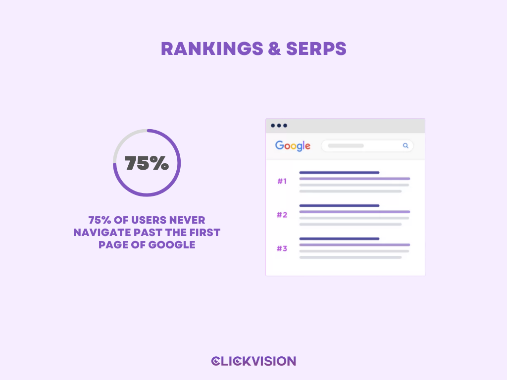 - 75% of users never navigate past the first page of Google (Source: HubSpot)