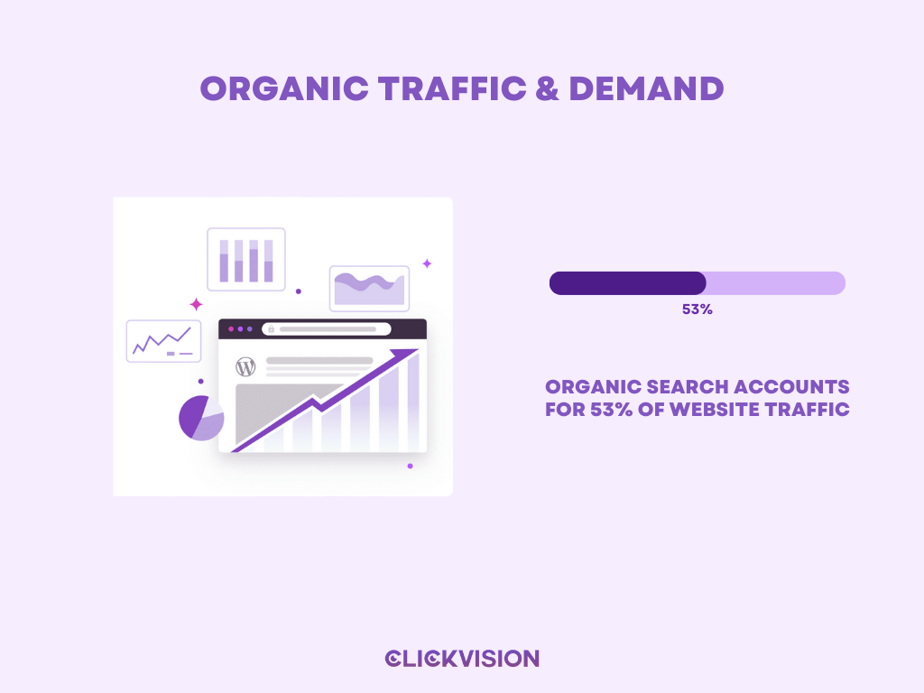 - Organic search accounts for 53% of website traffic. (Source: Embryo Agency)