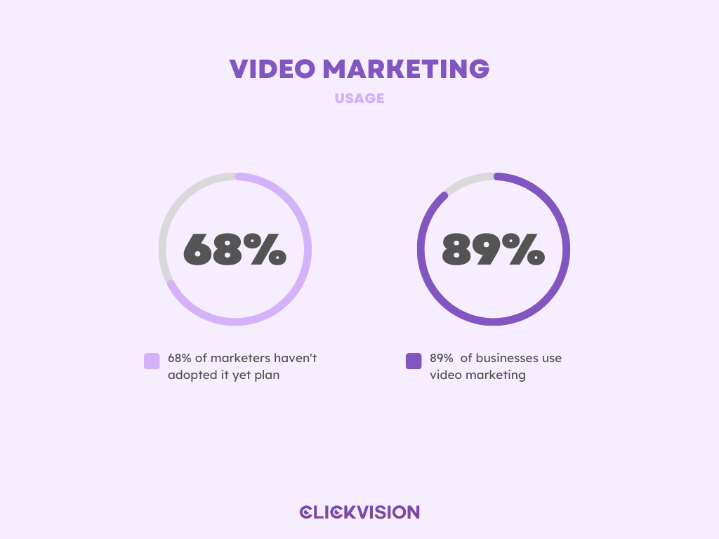 - 89% of businesses use video marketing, while 68% of marketers who haven’t adopted it yet plan to do so in 2025. (Source: HubSpot)