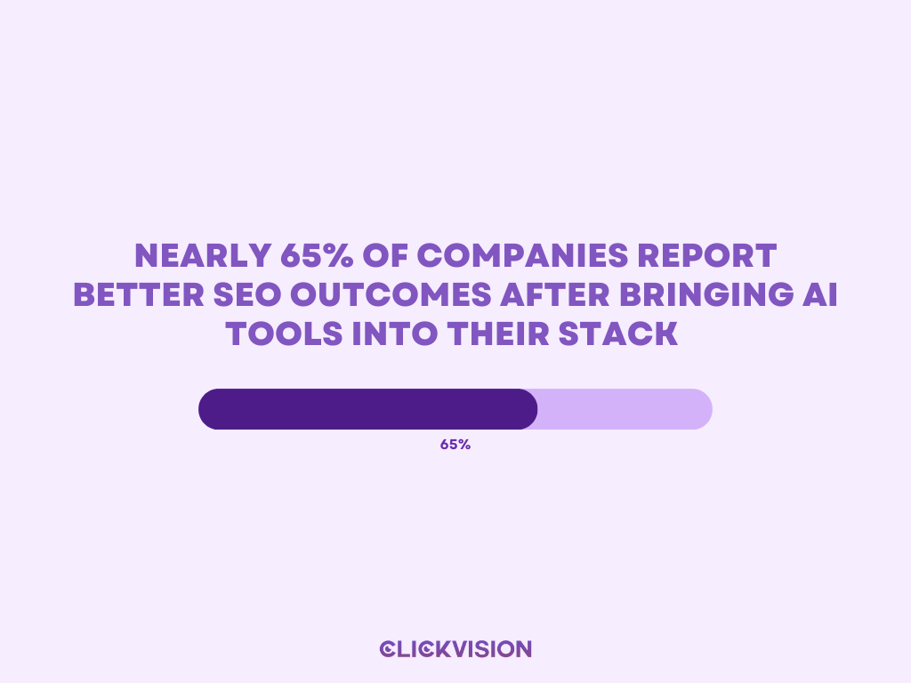 - Nearly 65% of companies report better SEO outcomes after bringing AI tools into their stack. (Source: Semrush)