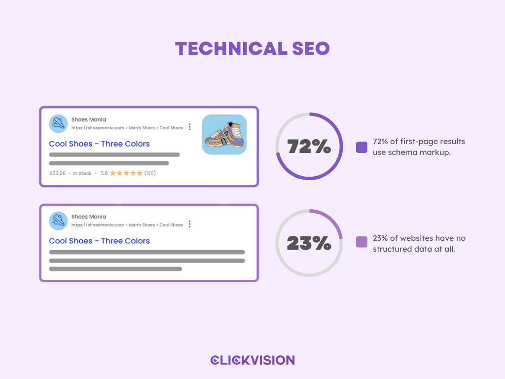 - 72% of first-page results use schema markup. (Source: Backlinko)