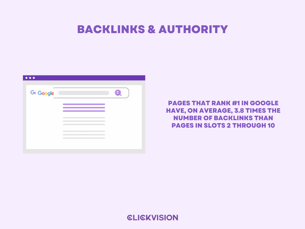 - Websites that appear on the first page of Google search results have an average of 200 backlinks. (Source: Backlinko)